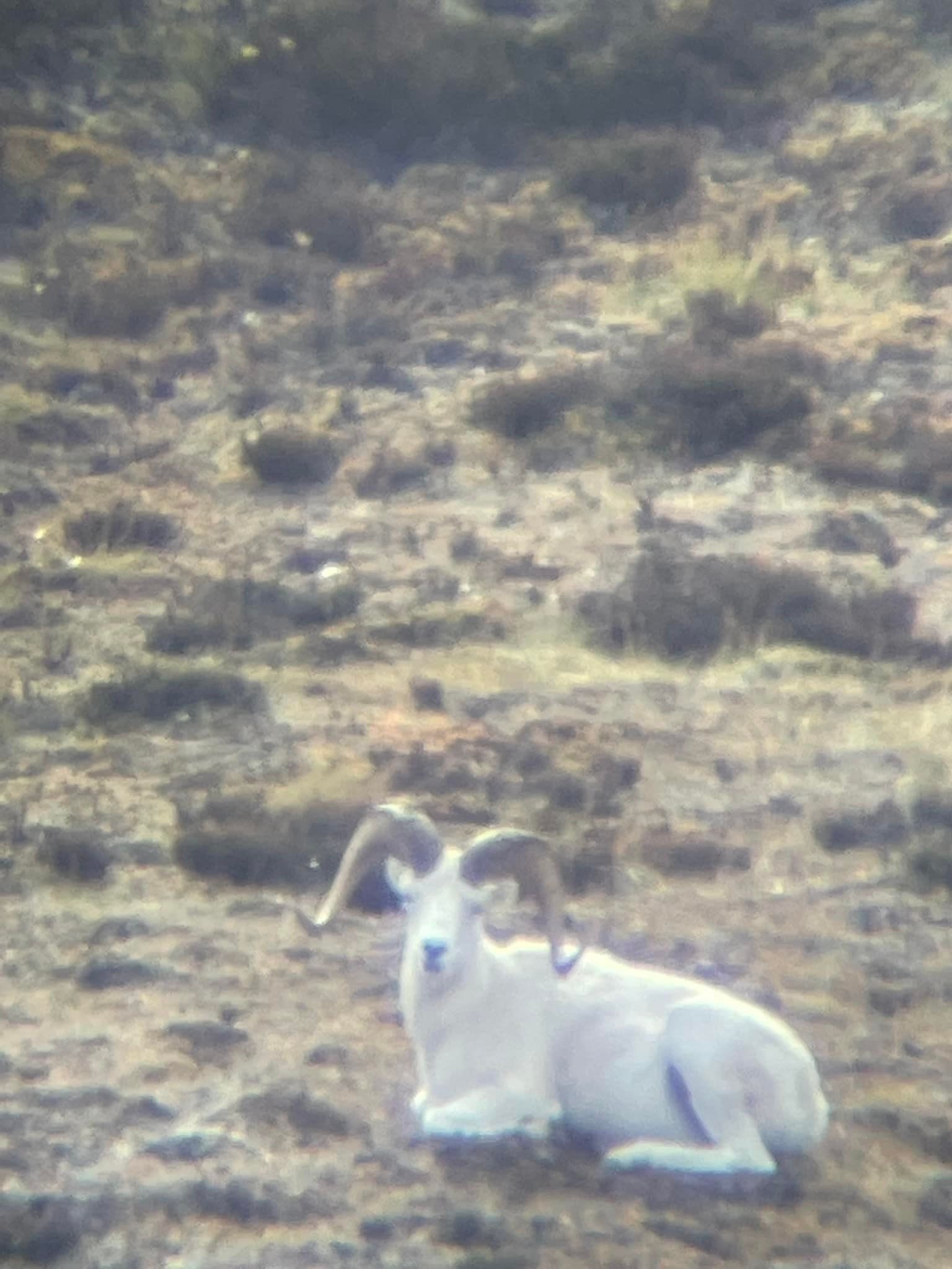 On the fifth day, we decided to get a better look at the first-day ram and it didn't take us long to find him. He had met up with some rams and lambs/ewes and ended up feeding right to us (which is exactly what Rob said they would do!). After several hours of glassing to make sure the ram was legal I took the shot. I had gotten my ram!